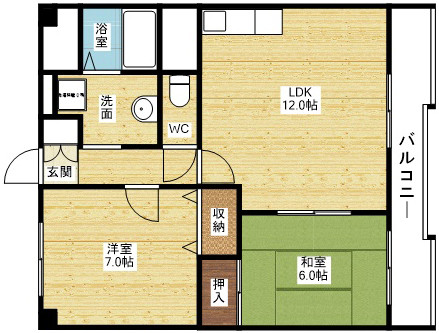 | 間取り詳細 | 洋室 7畳 、和室 6畳 、LDK 12畳 |