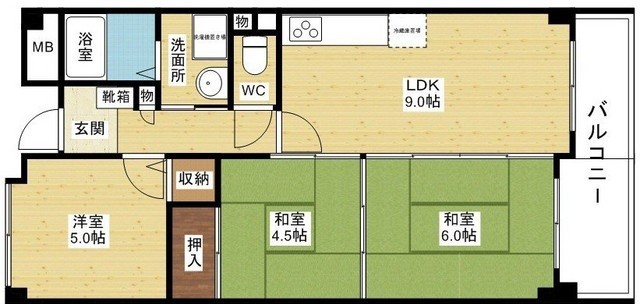 | 間取り詳細 | 洋室 6畳 、和室 4.5畳 、和室 6畳 、LDK 9畳 |