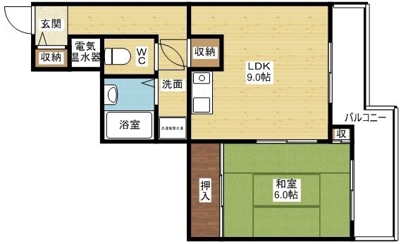 | 間取り詳細 | 和室 6畳 、LDK 9畳 |