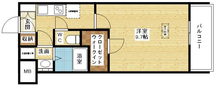 | 間取り詳細 | 洋室 9.7畳 、K 2.5畳 |