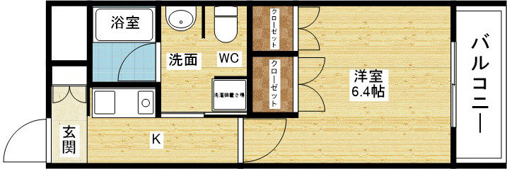| 間取り詳細 | 洋室 6.4畳 、K 1.6畳 |